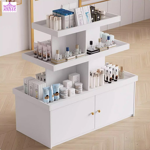 ชั้นวางยาทาเล็บสีขาวพร้อมขาตั้งสีทองทำจากไม้ทำตามสั่ง